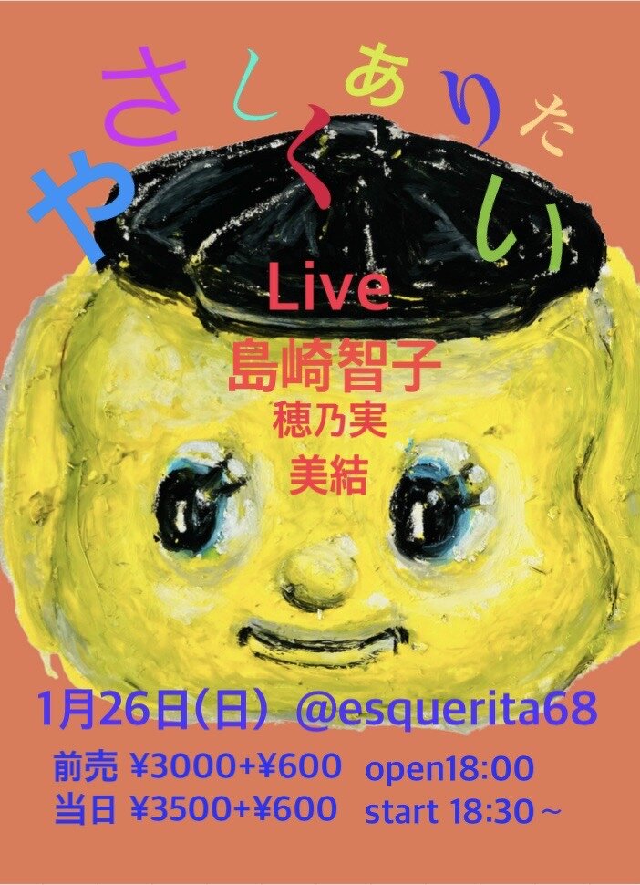 2025年01月26日(日) 終了 静岡 浜松 ESQUERITA68 出演 島崎智子 穂乃実 美結 開場18:00/開演18:30/終演21:00 前売予約3000円(D別)/当日3500円(D別) チケット予約フォーム https://esquerita68.jimdofree.com/live/ticket-mail-form/ 053-485-9968 https://esquerita68.jimdofree.com esquerita68@gmail.com